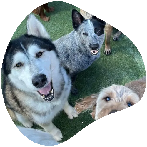 Dogs play outside in our large shade covered yards with friends the majority of the day. Other facilities will charge you a boarding rate and additional fee for playtime or daycare.